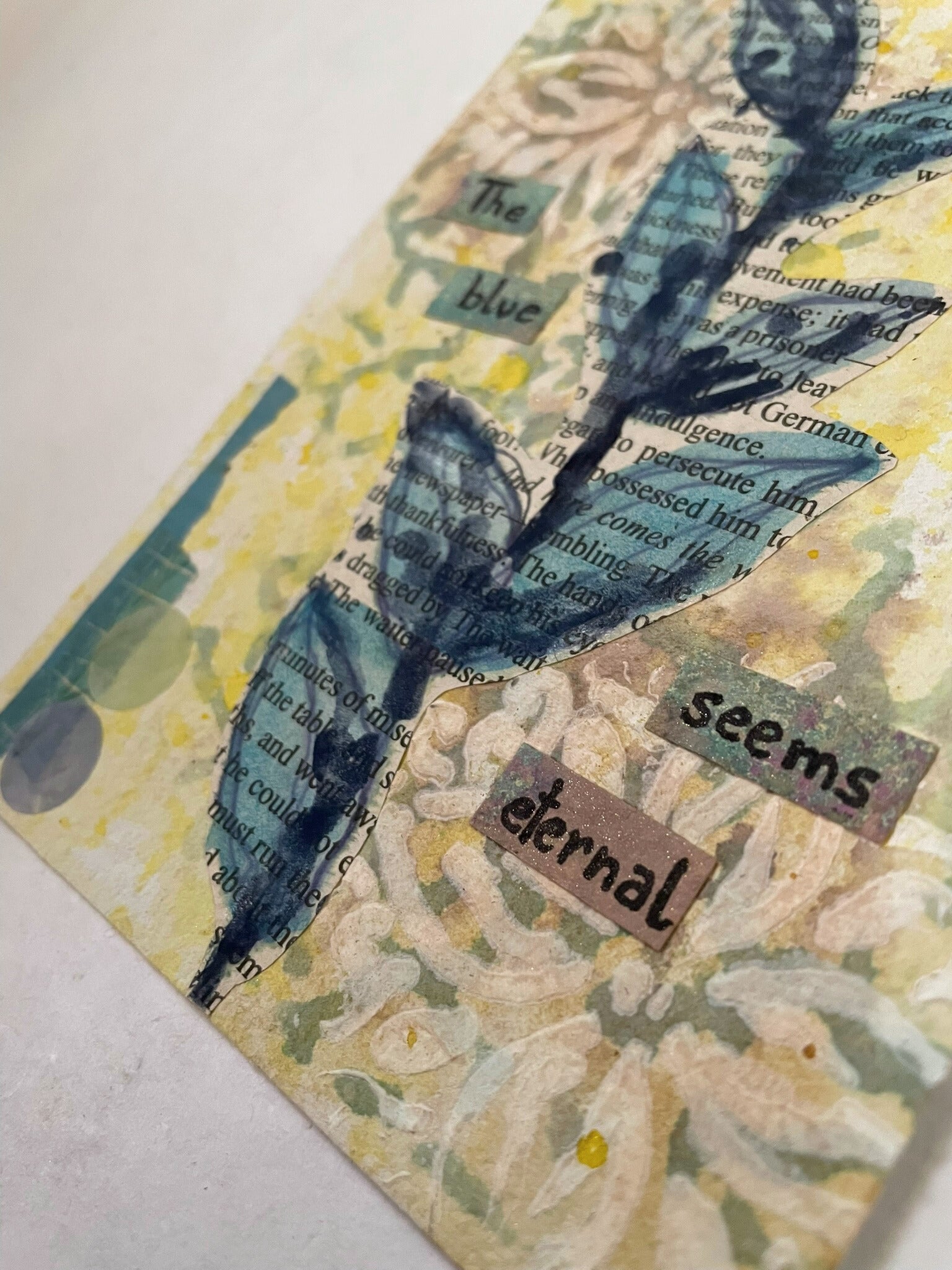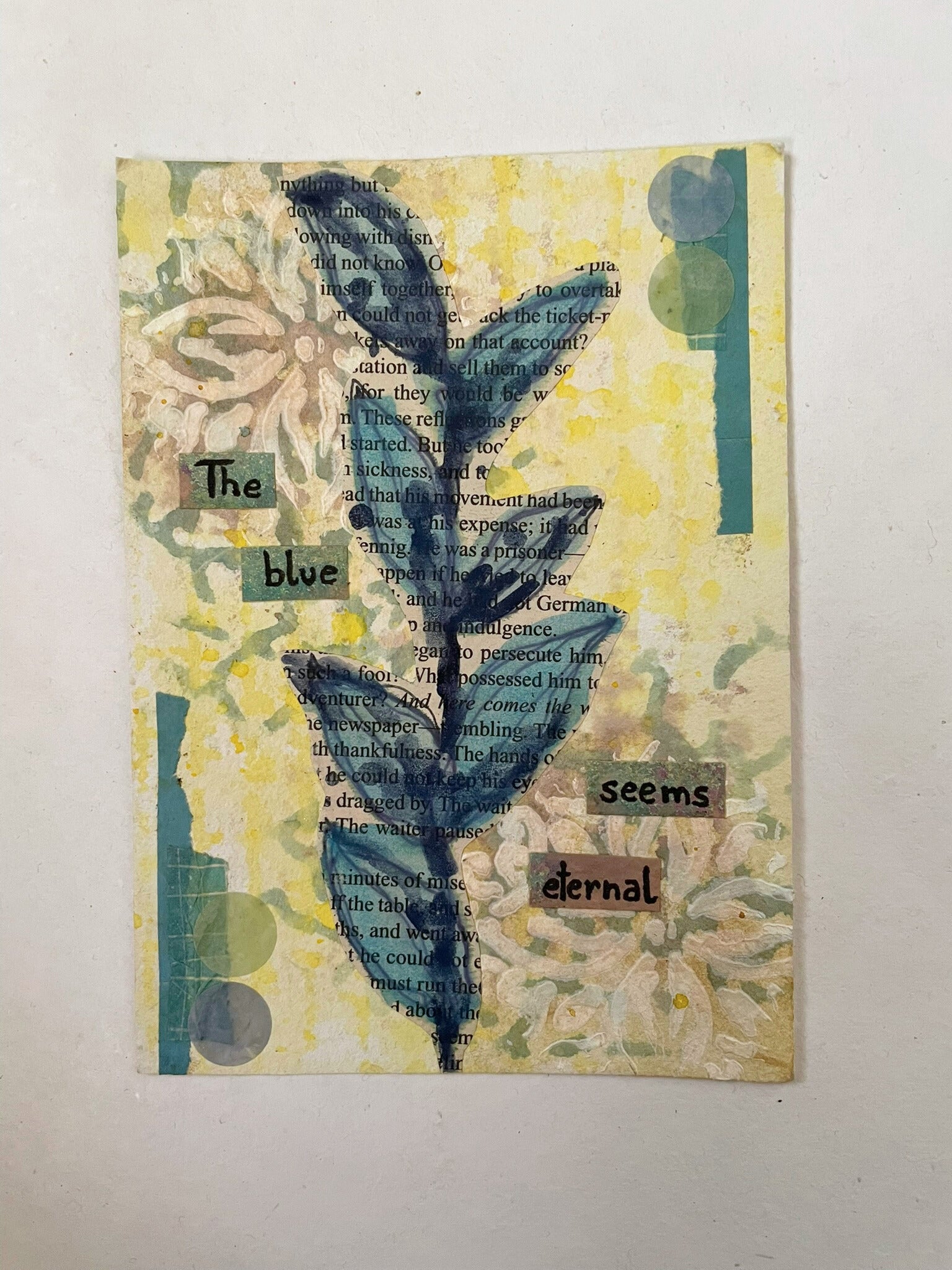 Handcrafted mixed media postcards featuring unique artistic designs created with various materials and techniques. Each card combines different textures, colours, and artistic elements to create one-of-a-kind pieces perfect for personal correspondence or as collectible art pieces.