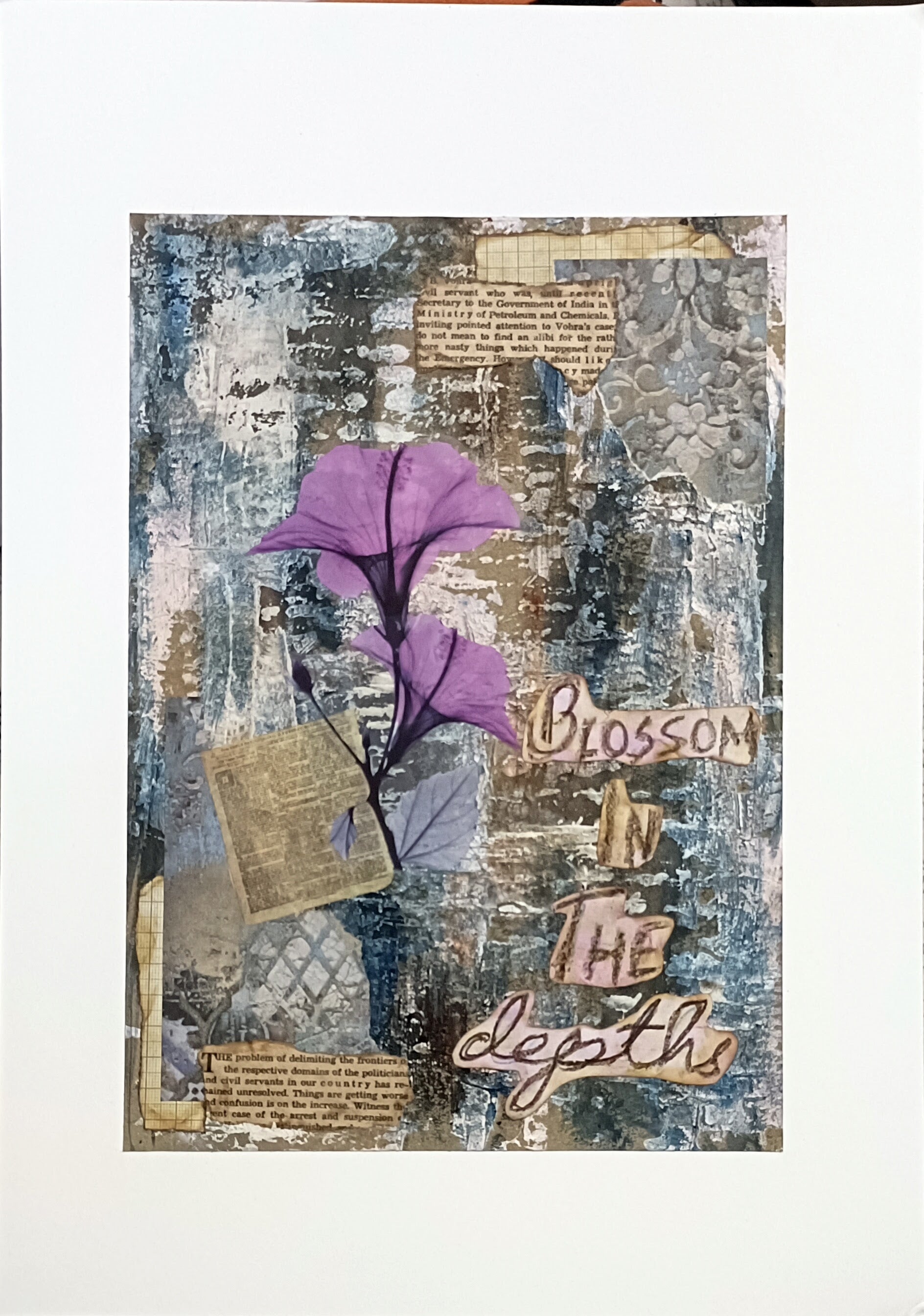 Mixed media artworks combining various materials and techniques to create layered, textured compositions. These pieces blend traditional and unconventional materials - from paint and paper to fabric, metal, and found objects - resulting in dynamic, multi-dimensional works that explore depth, contrast, and visual storytelling through diverse artistic elements.
