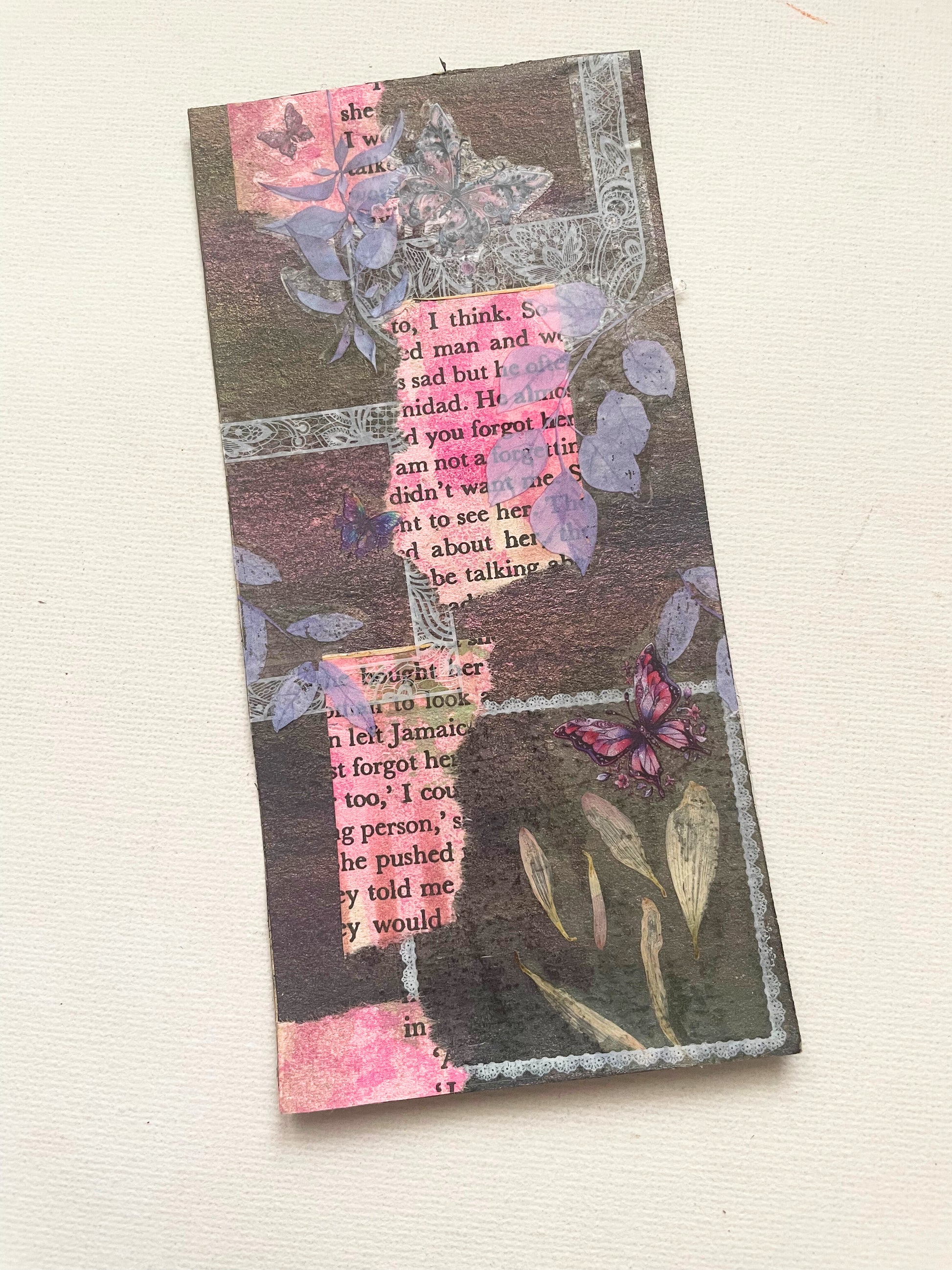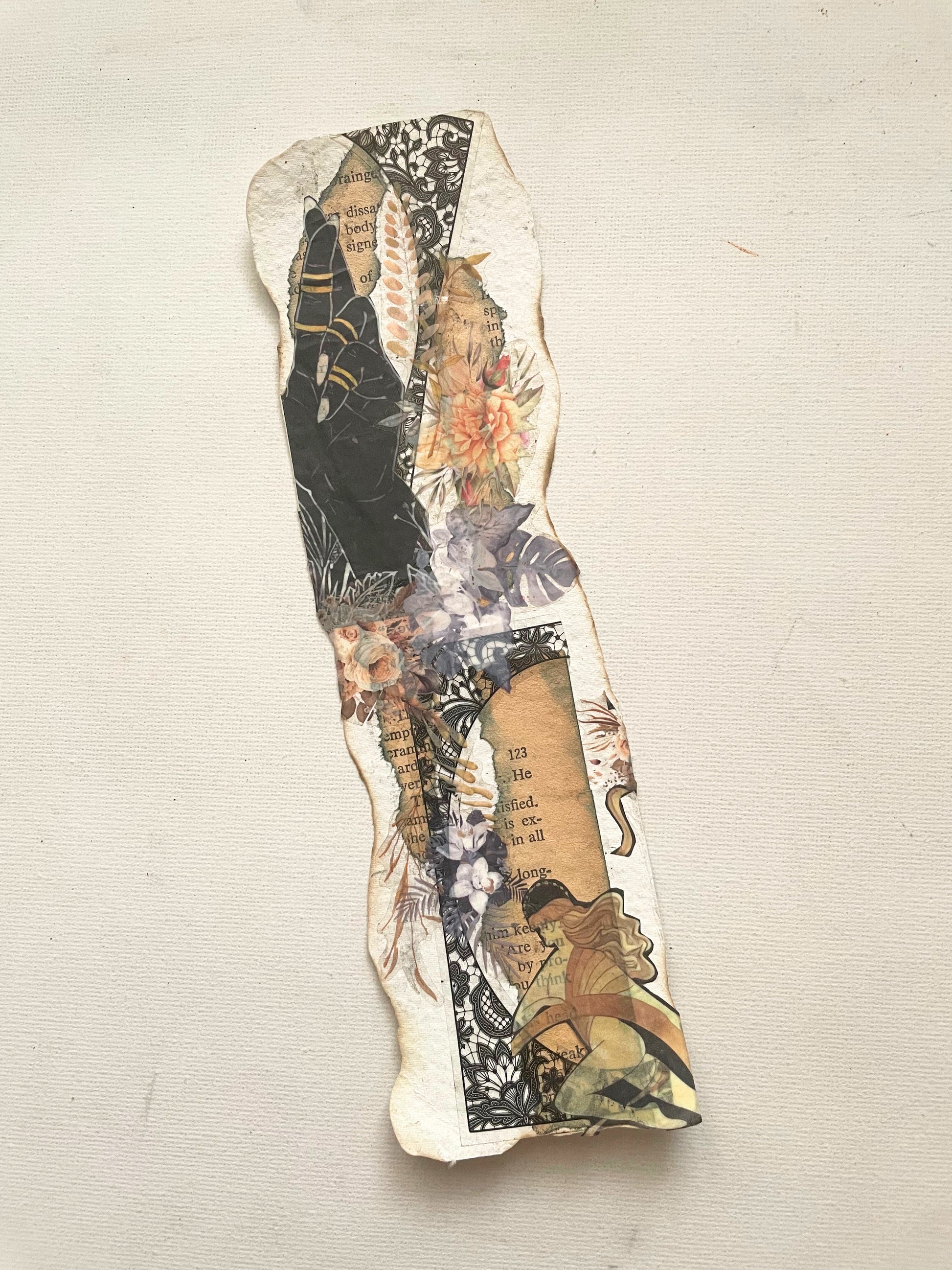 Beautiful handcrafted bookmarks featuring stunning mixed-media elements. Each bookmark captures the essence of the pink palette shown while being completely one-of-a-kind. Hand-painted with authentic vintage pieces from the 1900s incorporated into unique artistic designs.