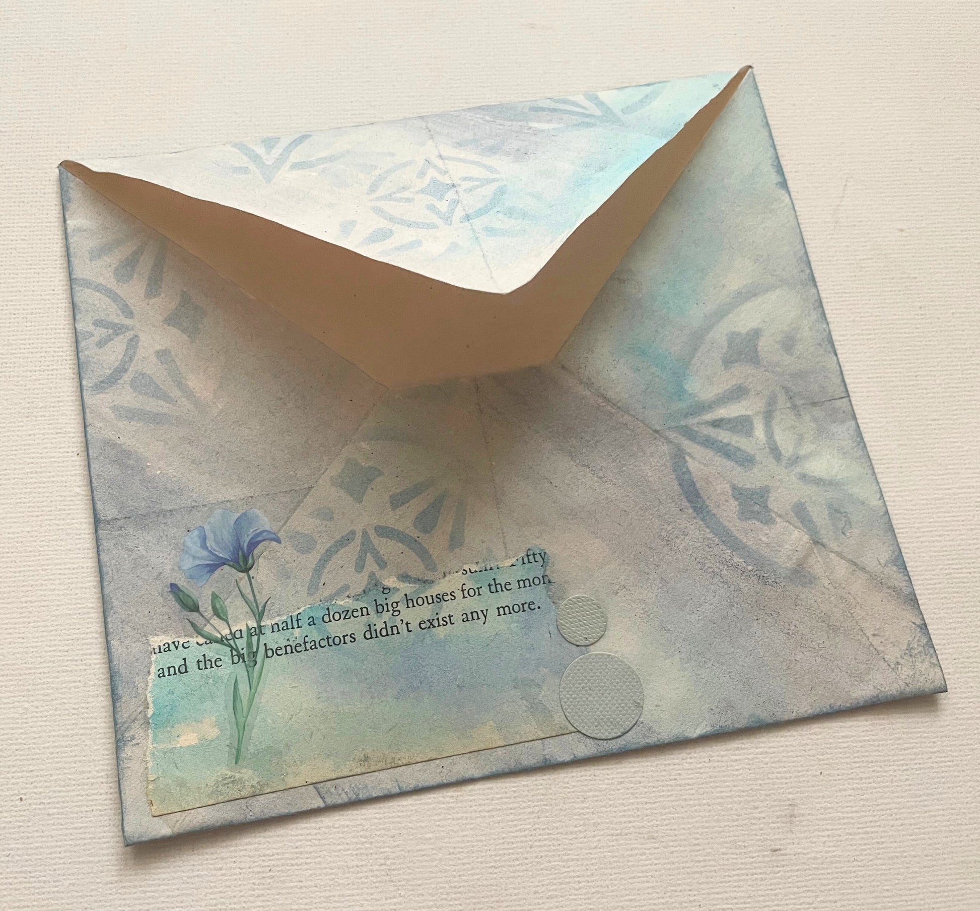 Handcrafted envelopes with mixed-media designs that make opening mail an experience of anticipation and delight. These aren't just containers—they're the first impression of something special inside.