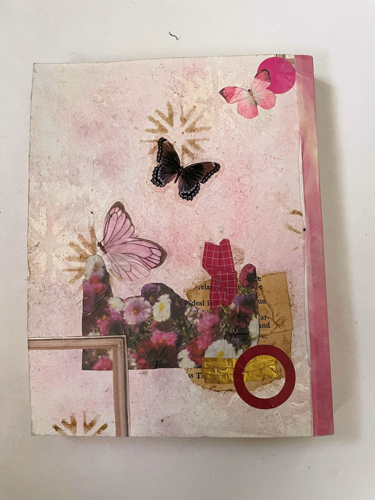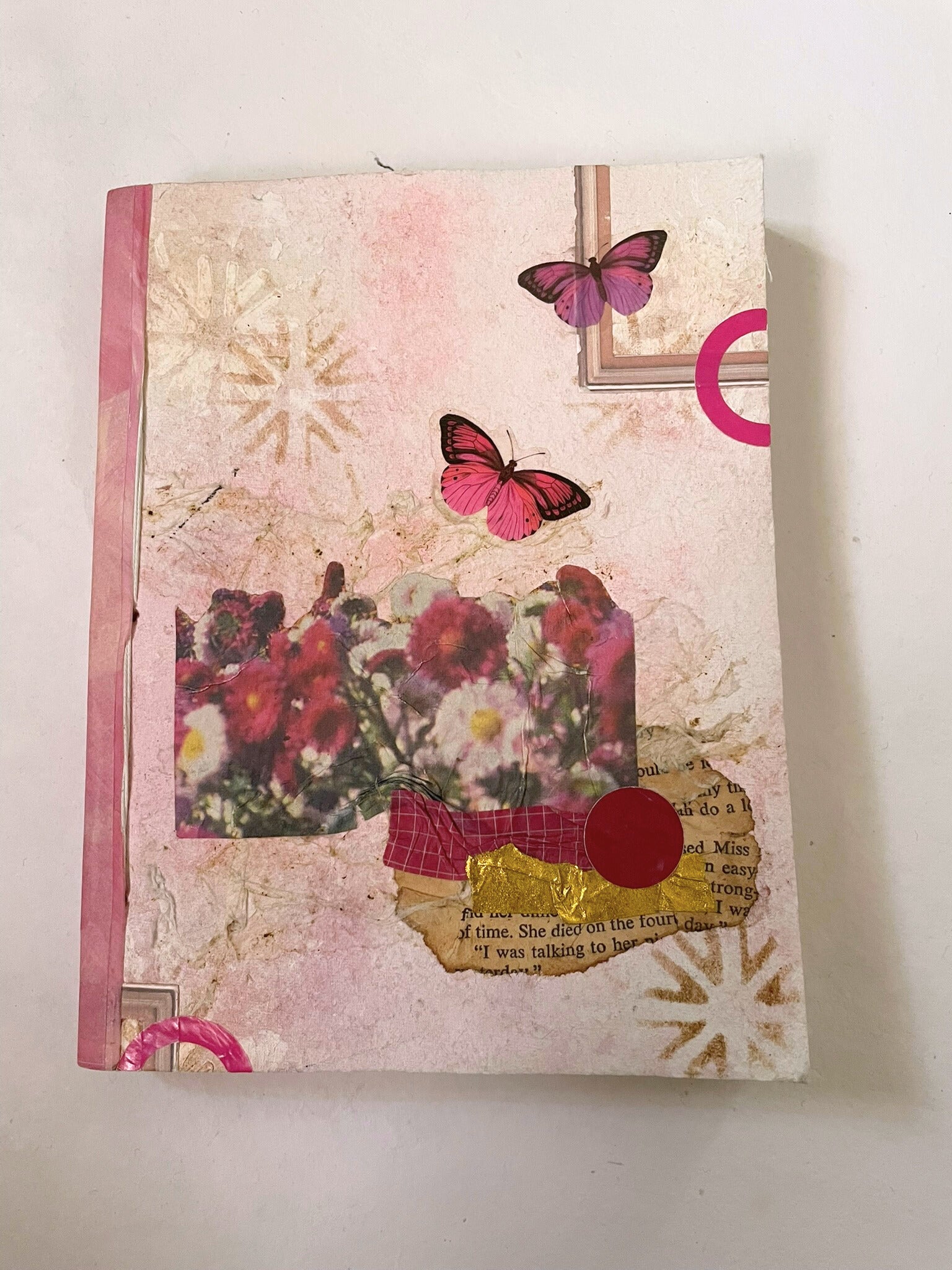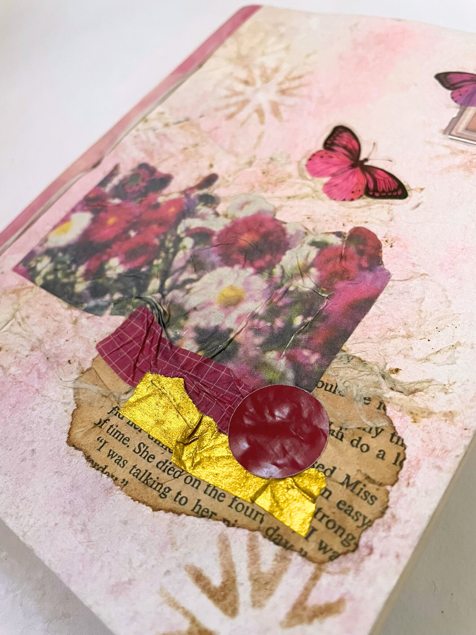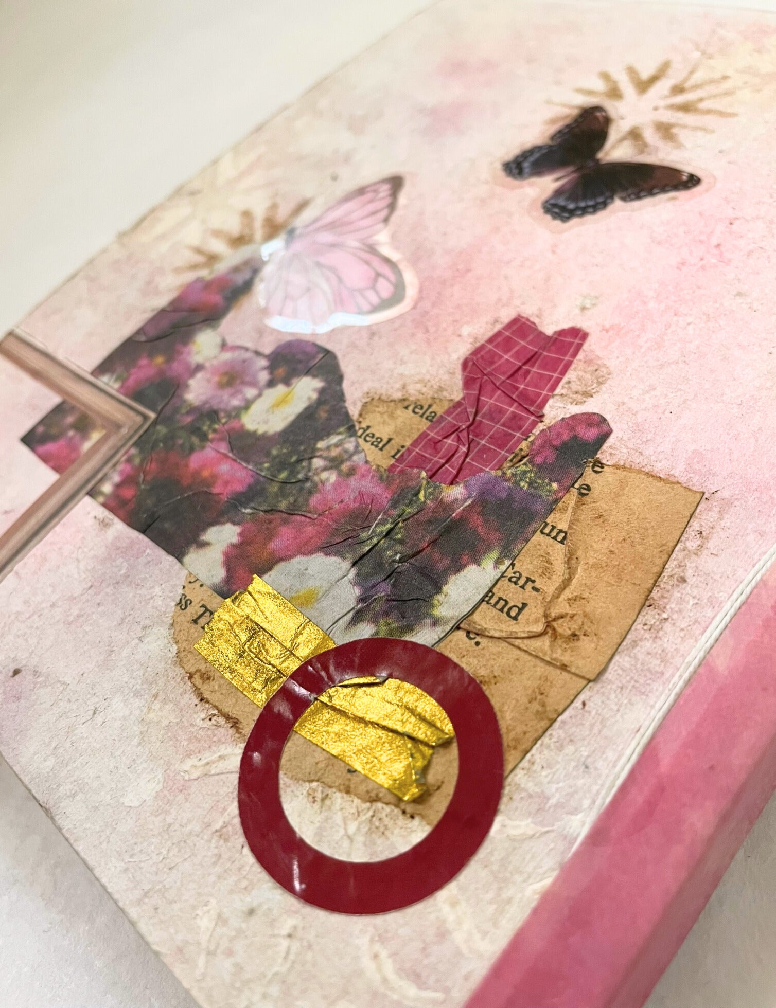 Each handcrafted notebook features unique, mixed-media front and back covers with their own distinct artistic themes and vintage elements, creating a tactile experience. No two are identical.