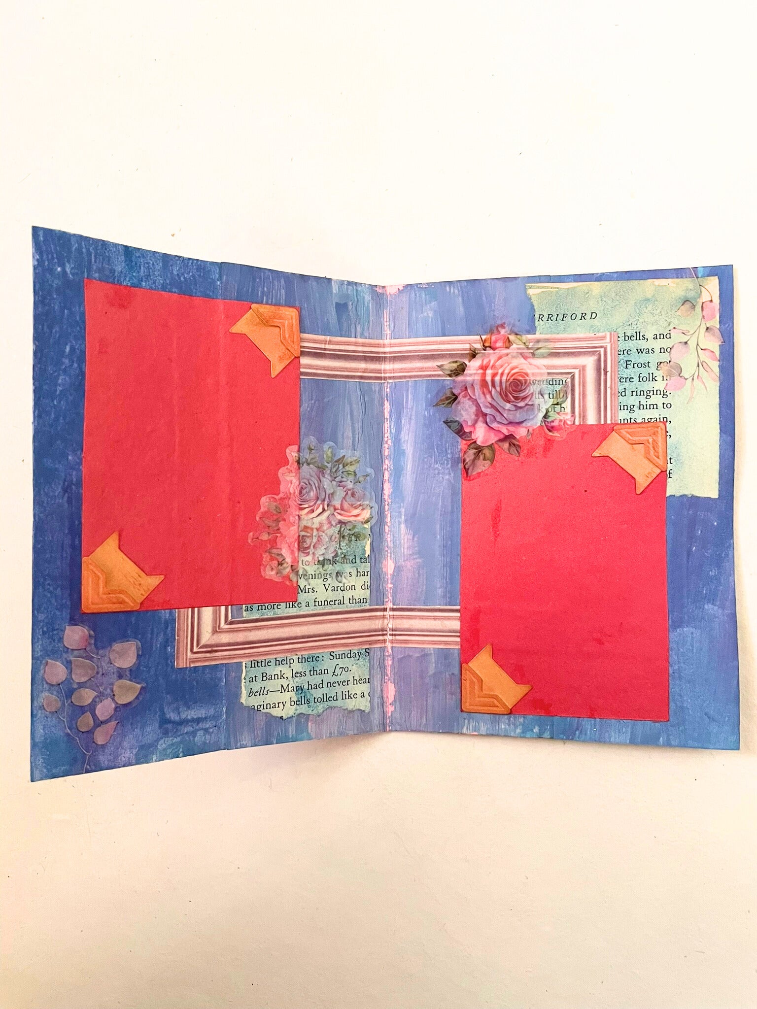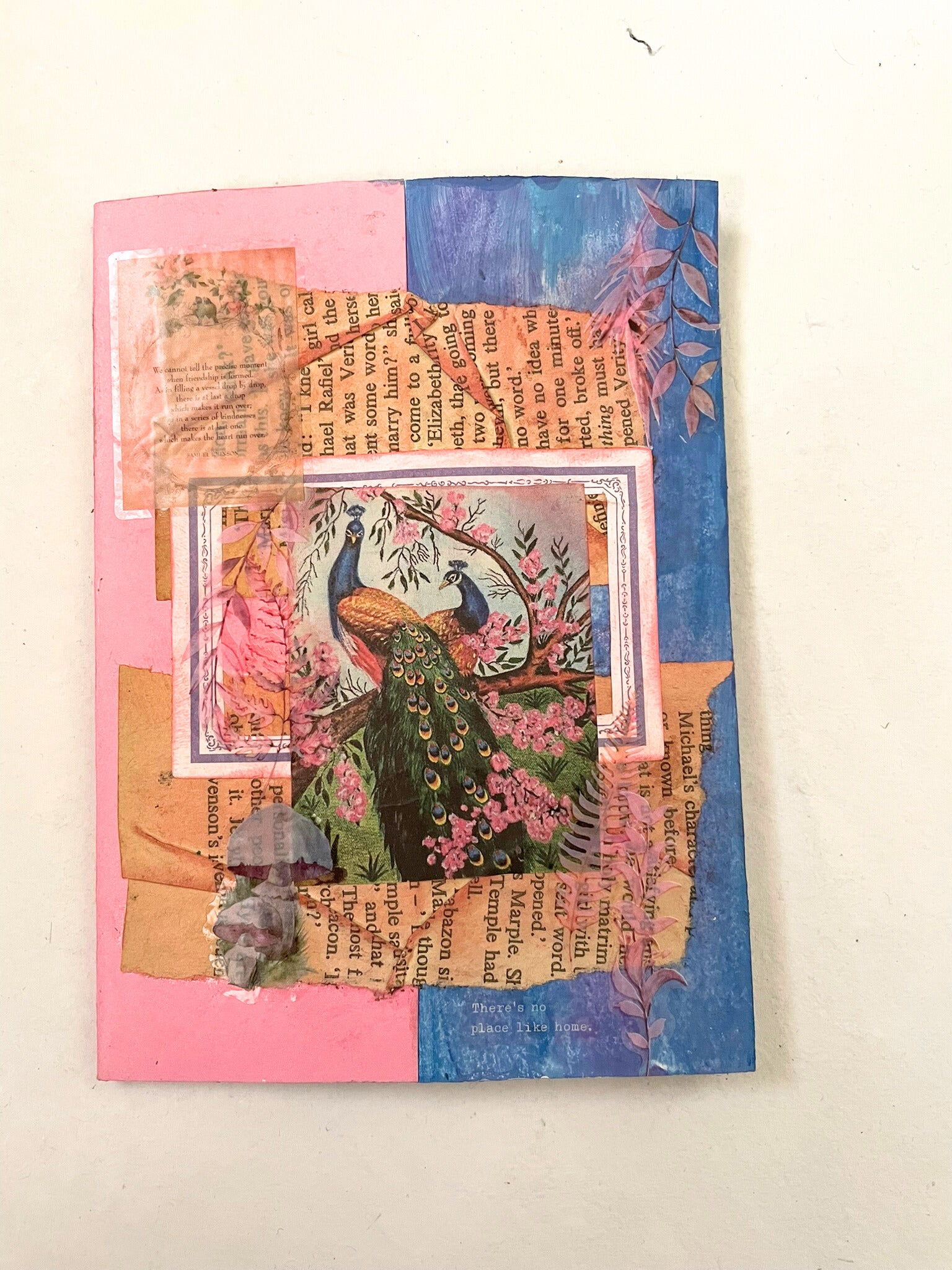 Handcrafted mixed media albums featuring artistic covers created with layered materials and textures. These unique memory books combine various artistic elements - papers, fabrics, embellishments, and mixed techniques - to create personalized keepsake albums perfect for preserving photos, memories, and special moments with distinctive artistic flair.