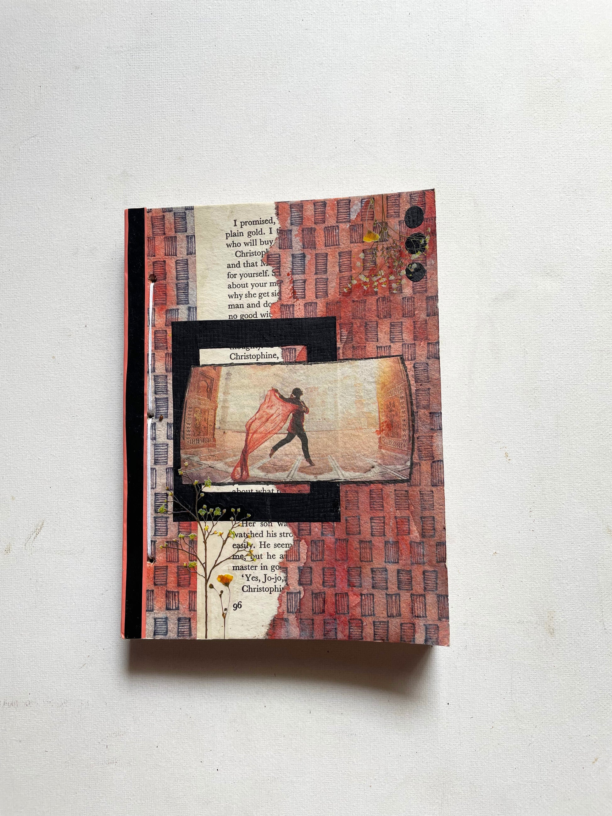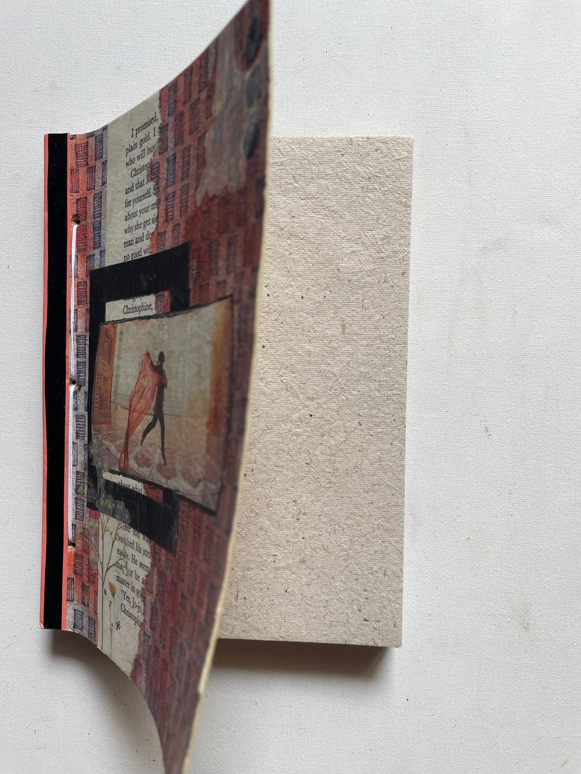 Each handcrafted notebook features a unique, mixed-media cover with its own distinct artistic themes and vintage elements, creating a tactile experience. No two are identical.